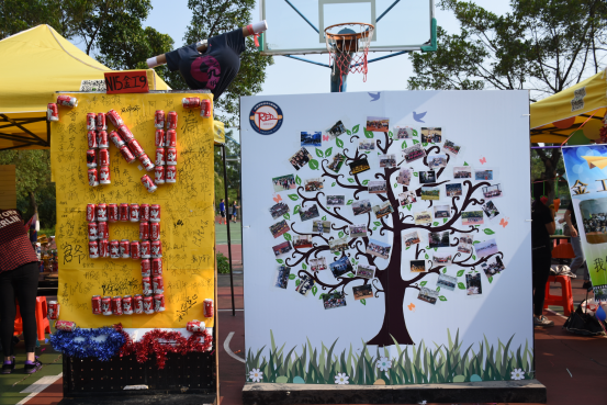 班级文化展示区主要是展示16个参赛班级的班服、班徽、班级旗、照片树及班级纪念册等。照片树是一张kt版上展示16个班级的照片,班级纪念册记录了班级的点滴,班服是班级团结的象征,是一种凝聚班级的事物,而且不同的班服代表着不同的班级文化,不同的班级理念,这些点滴都凝聚着各班的个性特点。