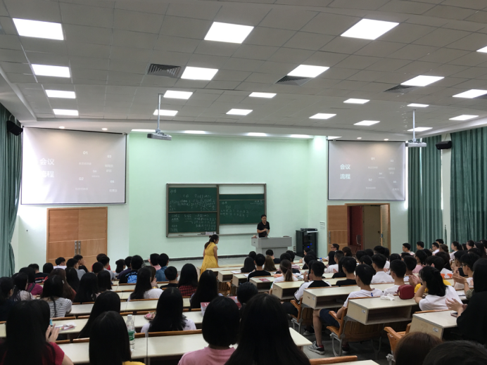 新生见面会在辅导员罗坤贤老师热情洋溢的开场致词中拉开序幕,简明扼要地向新生介绍了学院状况、新生应如何正确树立学习目标,在大学中更好地磨练自己;随后,文学院副院长尹康庄教授发表讲话,他首先代表文学院所有老师欢迎2017级全体新生加入广东财经大学华商学院这个大家庭,并鼓励新生要积极进取,勇于迎接新的挑战;接着,艺术设计系学工副主任彭博娜书记也对同学们提出了具体要求以及对新生们寄托了浓浓的期望;紧跟着,产品设计教研室主任张宪法老师和环境设计教研室张会锋老师上台发言,详细地阐述了各自专业方面的相关知识以及就业情况和前景等;随后,优秀学生代表也先后上台讲话,向新生们介绍了自身的学习和生活各方面经验,并分享了自身的学习体验。师生见面会的最后,进行了新生交流环节,新生们向优秀学生代表对自己的大学生活和学习方面的困惑提出了疑问,师兄师姐们都耐心的回答了问题,并鼓励同学们努力学习,希望在以后在各方面都能取得令人满意的成绩。