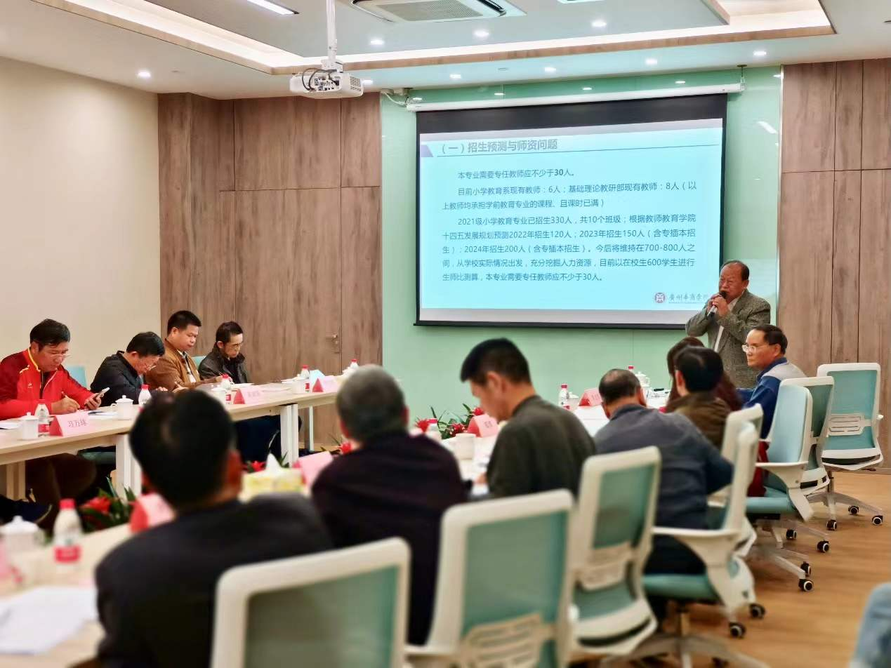 会议第一阶段,小学教育专业负责人李志厚教授从专业定位、学科优势、培养目标、课程目标、教学目标、管理目标等方面全面汇报了小学教育专业的建设思路。