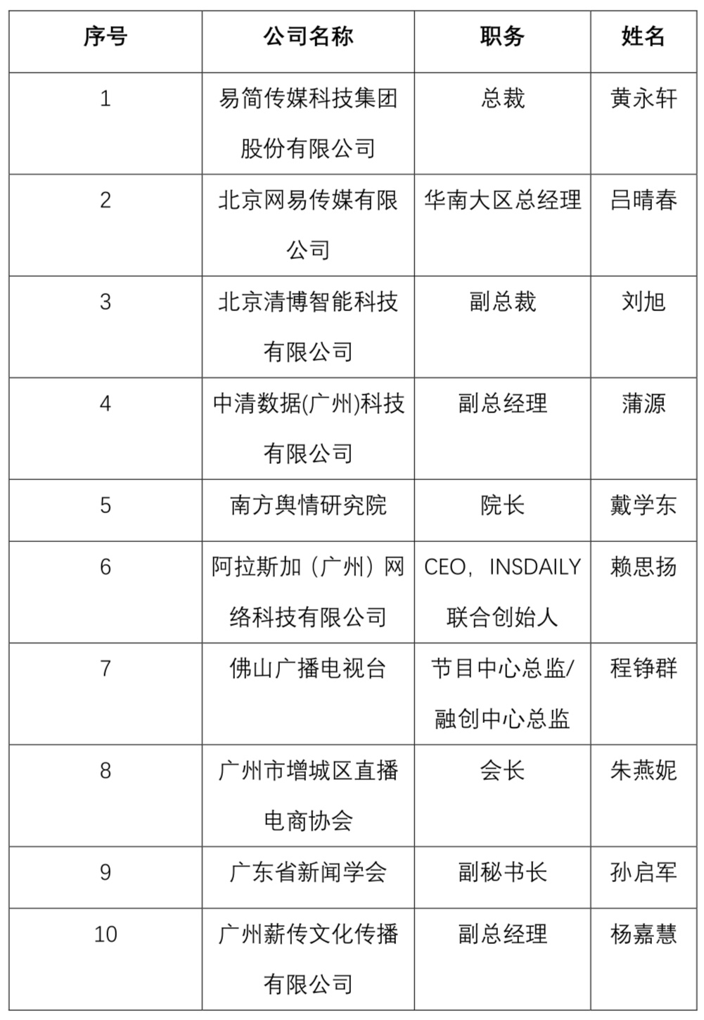 参会嘉宾名单(以当天实际情况为准)