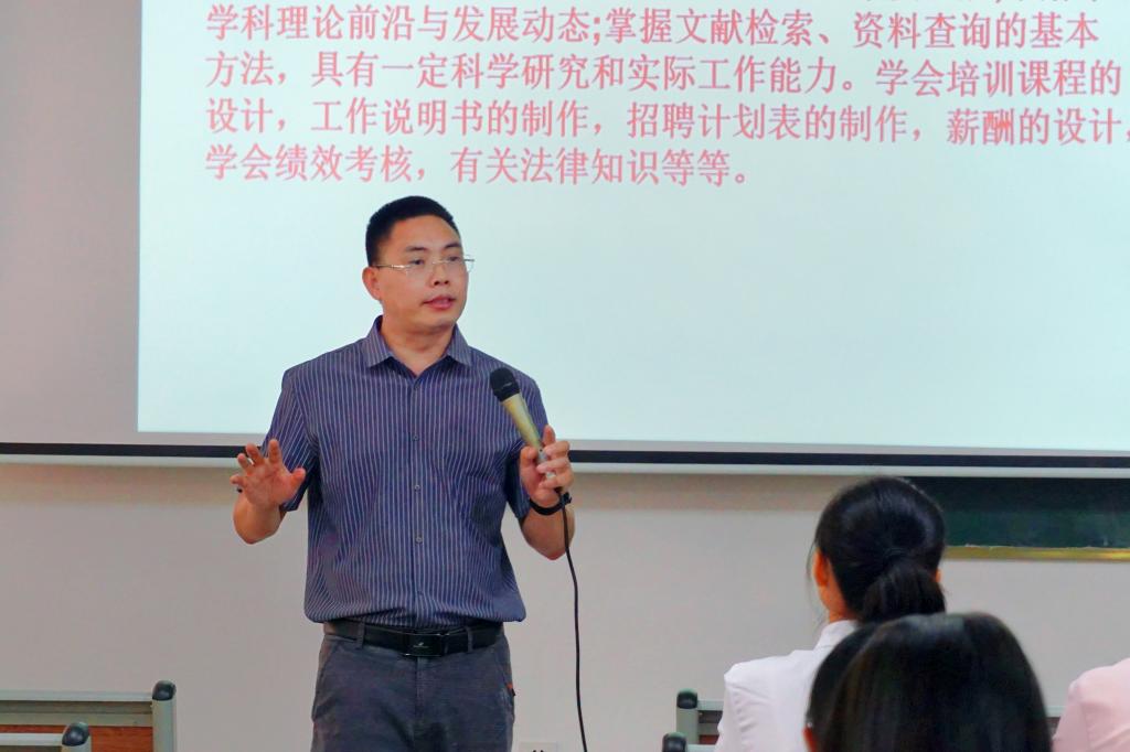 讲座开始前,同学们以热烈的掌声欢迎张干英副教授、袁仕海副教授、刘江泳老师的到来。会议伊始,袁仕海副教授以生动的语言向同学们讲述了人力资源管理专业的相关概念及要求,并指出目前人力资源管理专业依旧是一个专业性较强的学科,具有一定的不可替代性,同时人力资源管理专业培养的是应用型人才,此类人才在市场上仍有较大缺口,因此人力资源管理专业在未来仍具有远大前景。随后,袁老师介绍了目前华商集团与用友公司接洽BIP工程师相关证件考核事宜,这一证件的落实有利于人力资源管理专业的同学就业。