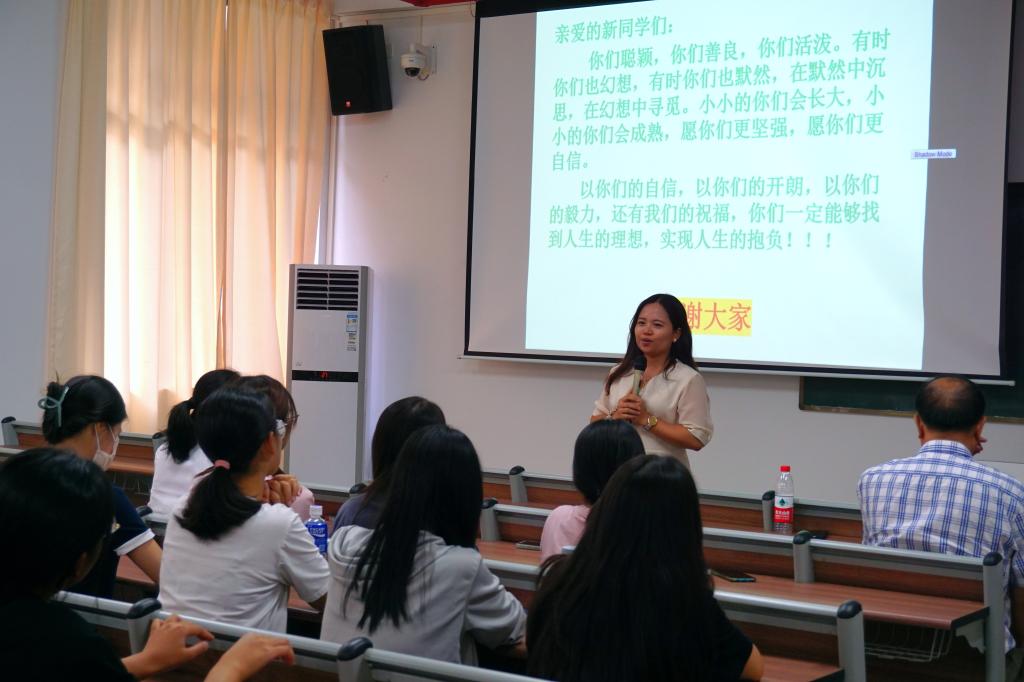 在袁老师生动有趣的讲述下,同学们对人力资源管理这一专业所学知识和相关就业前景有了一定了解。接下来,张干英副教授用亲身经历告诉同学们环境对人发展的深刻影响,并以自身经历劝诫同学们要在大学期间珍惜时光,努力学好专业课知识,不断拼搏,勇于攀登,成为更好的自己。