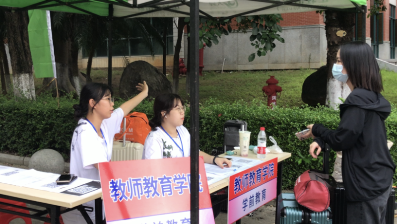 炎炎烈日下,也难掩志愿者们的热情,志愿者们热情积极地引导新生。在志愿者们的努力下,新生们顺利完成报到。