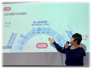 举办开营仪式后,企校合作的博沃公司陈丹萍总经理,为同学们深入讲解解小红书与抖音的平台逻辑、小红书的起号技巧。