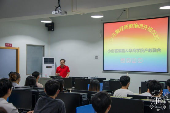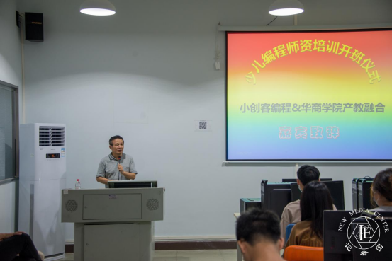 华商学院数据科学学院常务副院长赖庆教授在致辞中提到,开展产教融合项目意义重大,作为鸭脖唯一的一个工科学院,在实施编程相关的项目上,数据科学学院的同学们具有得天独厚的优势,通过项目的实施,除了对同学们个人的实践能力和素质培养有积极作用,同时还有利于提高学院的教学质量。在社会服务层面,培养了一批满足社会对少儿编程需要的人才,实现多方共赢。