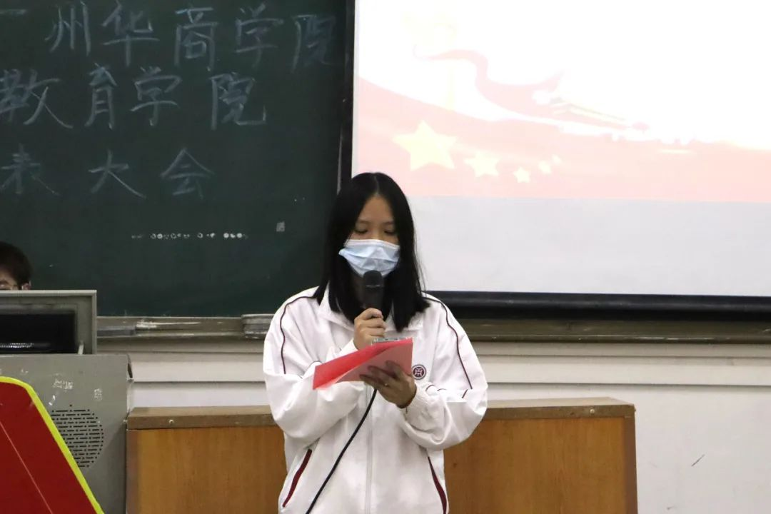 主持人宣读第一届委员会委员最终名单:朱娜、曾锦鸿、彭诗颖、何钰柔、江雨希。