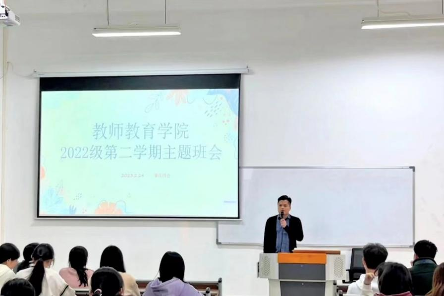 筑梦新学期,扬帆再启航。为深入贯彻落实省教育厅关于春季开学工作的部署要求,结合学校实际情况,进一步增强鸭脖学生安全意识,提高个人防范能力。教师教育学院通过主题班会的形式,组织各年级召开以防范电信网络诈骗、消防安全、交通安全、防范自然灾害等内容的为主题的宣传教育班会,帮助同学们尽快调整状态,以崭新的精神面貌投入新学期的学习生活。教师教育学院分别于2月21日与2月24日开展2022-2023第二学期开学主题班会暨文明安全教育班会。以班级为单位开展,由各年级辅导员主讲。