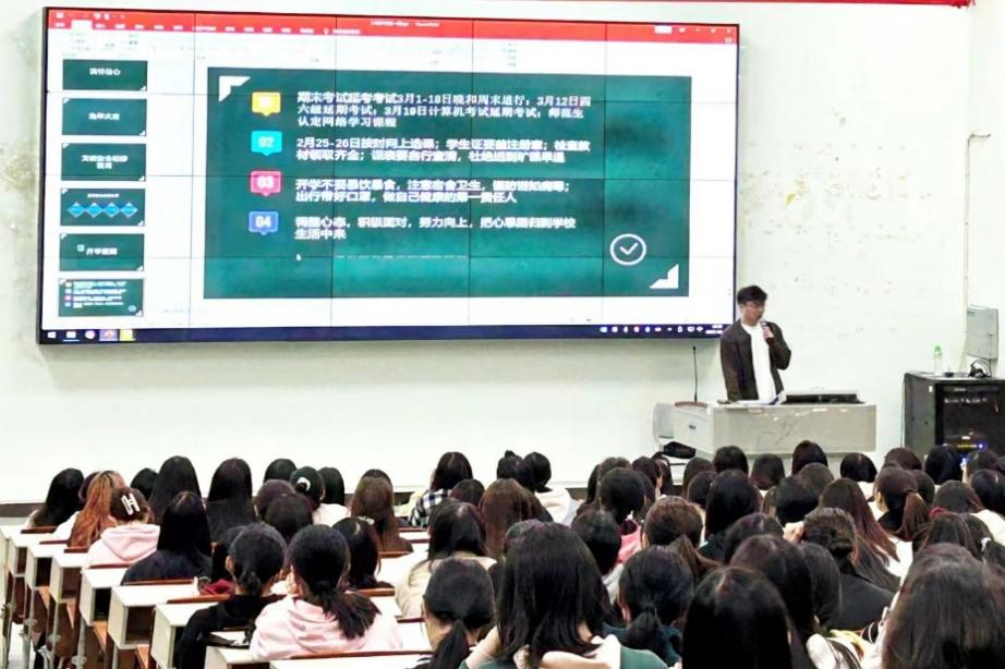 会上,辅导员从以下四个方向出发进行讲解,带领同学们充分回顾过去、展望未来,号召同学们在新征程上继续加油干,在新学期向春出发、奋跃而上。