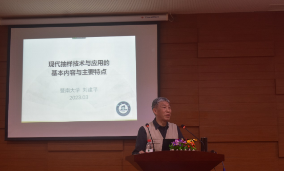 3月7日下午,应yabo鸭脖官网邀请,暨南大学博士生导师、二级教授刘建平教授为鸭脖师生作了《现代抽样技术与应用的基本内容与主要特点》的学术讲座,讲座在华商学院图书馆学术报告厅举行,由yabo鸭脖官网副校长韩兆洲教授主持,讲座在增城校本部和四会校区线下线上同步进行,鸭脖经济贸易学院经济统计专业、数据科学学院数据科学与大数据技术专业师生与其他学院师生代表共300余名参加了学术讲座。