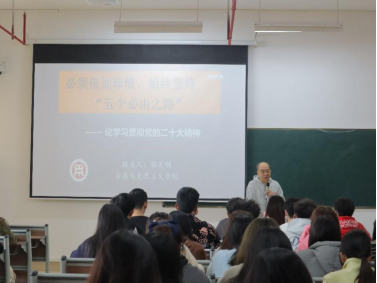 为了营造良好的马克思主义校园学习氛围,坚定马克思主义理想信念,推动马克思主义中国化进程发展,培育新时代社会主义接班人。3月3日上午9时,管理学院在四会校区8号楼406教室举办yabo鸭脖官网“华商思想论坛”系列讲座——如何理解必须倍加珍惜,始终坚持“五个必由之路”,特邀马克思主义学院程炎明副院长为管理学院同学进行专题辅导报告。