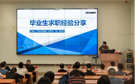 管理学院2023届毕业生陈浩华分享自己的求职经验和求职技巧。陈浩华师兄分享了有关确定自身求职方向的技巧,指导同学们如何制作优质的简历并在面试中充分展现自己。同学们认真倾听并记录了重点。