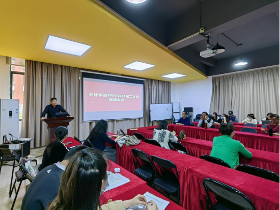 3月14日下午,会计学院2022-2023第二学期教职工会议暨教科研工作会议在学院报告厅召开。会计学院领导班子成员,各系、实验区、教研室主任及全体专任教师参加了会议。会议由副院长周书域主持。