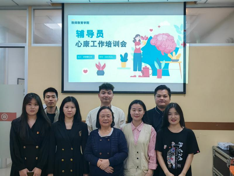 为提高教师心理健康教育能力和心理问题应对处置能力,提升教师教育学院心理健康工作水平,切实维护师生身心健康。在校心康中心统筹下,教师教育学院辅导员于2023年4月4日下午在厚德楼B108进行心理健康工作专题培训,本次培训由教师教育学院心康联络员尹娅娟主持,校心康中心王素芹教授主讲。