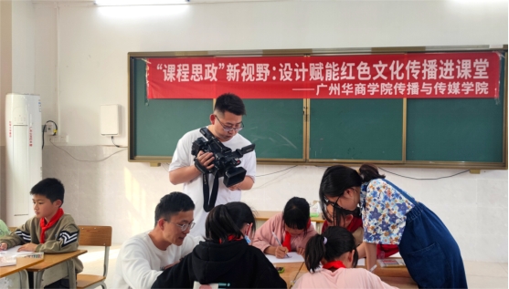 4月10日,yabo鸭脖官网传播与传媒学院视频传播系老师及学生代表,一行12人,来到北塘村红军小学将设计与美育带进小学课堂,赋能红色文化的传播。