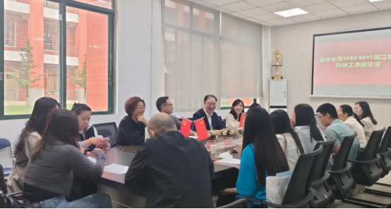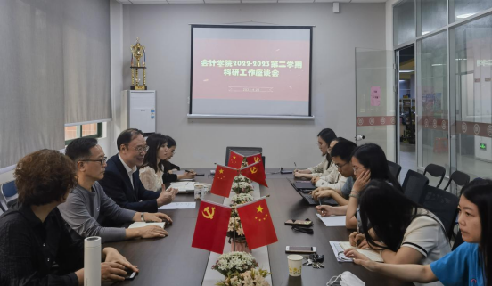 为发挥科研骨干引领示范,推进学院科研工作高质量发展,2023年4月25日下午,会计学院2022-2023第二学期科研工作座谈会在学院会议室举行。学院领导班子成员、各教学系正副主任、博士工程人才及科研骨干教师参加了座谈会。会议由陈美华副校长主持。