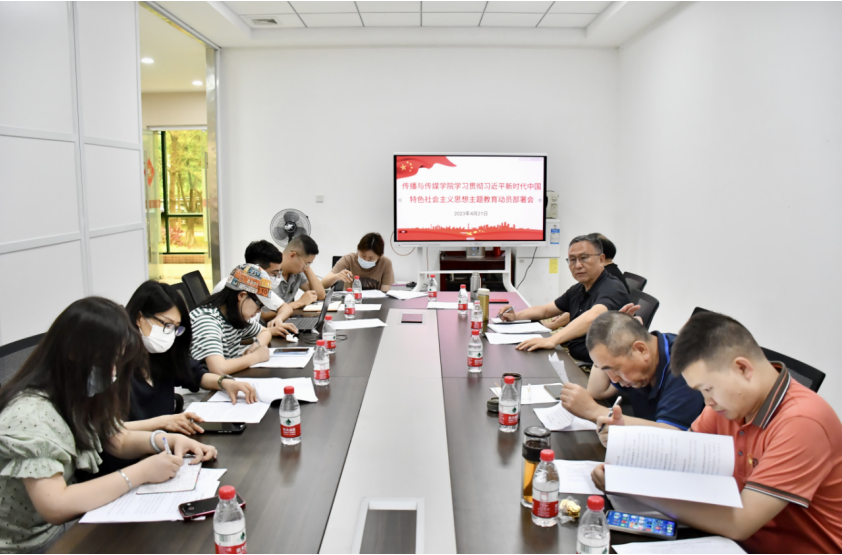 2023年4月21日,传播与传媒学院在厚德楼A101会议室召开学习贯彻习近平新时代中国特色社会主义思想主题教育动员部署会,认真学习贯彻中央、省委、学校党委学习贯彻习近平新时代中国特色社会主义思想主题教育工作会议精神,对全院主题教育工作进行安排部署,动员全院党员干部以良好的精神面貌投入到主题教育中来,确保主题教育有序开展、取得实效。参加会议的有传播与传媒学院党委书记倪列怀、院长赵维江、副院长王健、副院长林绍忠、院长助理程海涛、党委副书记谢清明,学院党委下属支部书记,以及学院各办公室、各系领导及专业负责人。