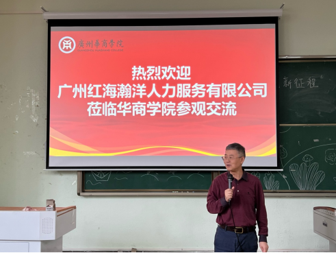 秦陇一副院长对广州红海瀚洋人才有限公司郭小莹总经理及相关负责人的到来表示热烈的欢迎,秦陇一副院长强调了校企合作组建华商红海新媒体直播创业团队的重要性和必要性,希望管理学院同学积极参与其中,在新媒体直播的实践中不断提升自己的综合素质和能力。