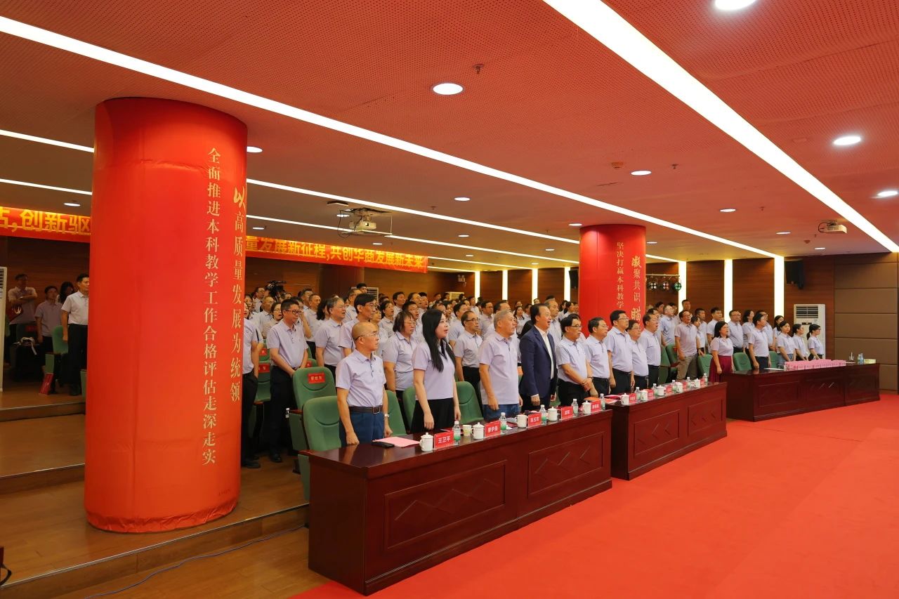 本科教学工作合格评估是对学校办学方向定位、教育教学成果、人才培养质量的真实检验,是当前鸭脖面临的一次大考,是关乎学校长远发展、各项事业高质量发展的一件大事。自迎二十周年校庆 迎本科合格评估工作启动以来,学校上下团结一致、组织严密,凝聚智慧、彰显特色,纵深推进、全面覆盖,取得了阶段性成效。下一步,鸭脖将以此次责任落实大会为契机,结合学校实际不断细化标准,进一步深化教学改革,集中力量补短板、强弱项、亮特色、显优势,切实达到“以评促建、以评促改、以评促管、评建结合、重在建设”的目的,以“功成不必在我,功成必定有我”的精神和担当围绕中心、服务大局,全面推进迎二十周年校庆 迎本科合格评估工作,聚焦、聚神、聚力,以更加饱满的热情、更加务实的行动确保各项任务落到实处,以优异的成绩迎接建校二十周年,以充足的信心迎接本科教学工作合格评估!
