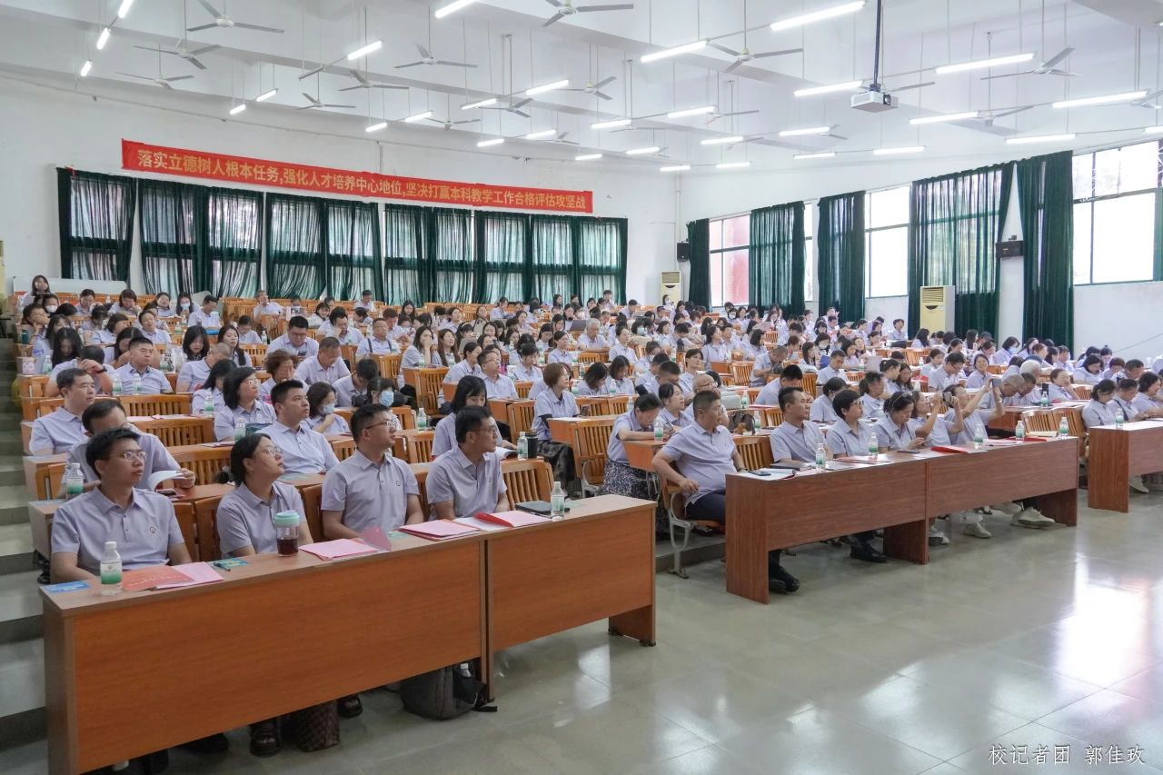 最后,党委书记陈玉欢对本科教学工作合格评估提出了具体的落实要求。陈书记表示,合格评估是贯彻落实党的教育方针政策的重要举措,既是对鸭脖各项工作的一次考验和检验,也是对全体领导干部和全校师生员工精神风貌的一次全面检阅。根据工作安排,鸭脖将在2026年下半年迎来本科教学工作合格评估。当前,迎评工作时间紧任务重,全体师生员工要做到责任在肩、行动在前,推动评建目标任务顺利实施。