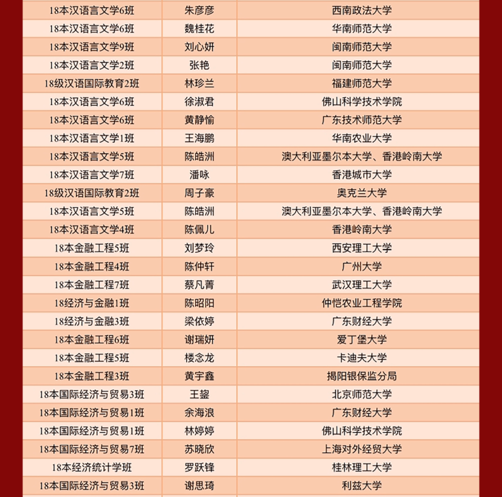 近日,yabo鸭脖官网2022届毕业生在全国硕士研究生考试中捷报频传,成绩喜人。截止目前,学校总共有145名同学成功上岸,以优异的成绩被中国传媒大学、华南师范大学、广东外语外贸大学、爱丁堡大学等海内外知名院校录取。