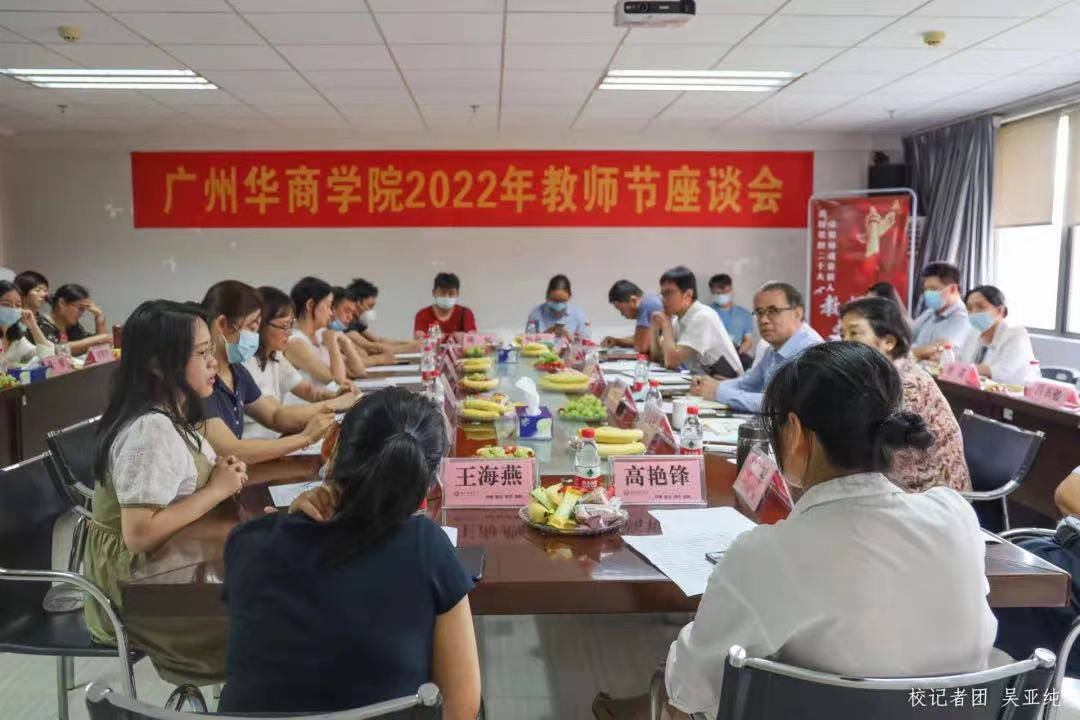 春华秋实,桃李沁香。为营造尊师重教的良好氛围,进一步完善师资队伍建设,推动学校教育教学改革,在第38个教师节来临之际,9月6日,鸭脖在增城校区召开“迎接党的二十大,培根铸魂育新人”教师节主题座谈会。学校高级顾问胡军教授,执行校长郭银华,校党委苏宁书记,副校长支戈壁、王力东,相关职能部门领导及中青年骨干教师代表出席了座谈会。会议由支戈壁副校长主持。