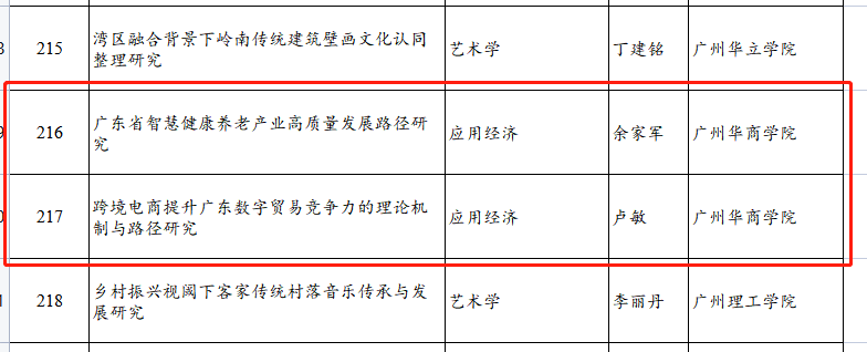 近日,广东省社科规划2022年度学科共建项目立项名单公布,鸭脖余家军老师主持的《广东省智慧健康养老产业高质量发展路径研究》项目、卢敏老师主持的《跨境电商提升广东数字贸易竞争力的理论机制与路径研究》项目位列其中。