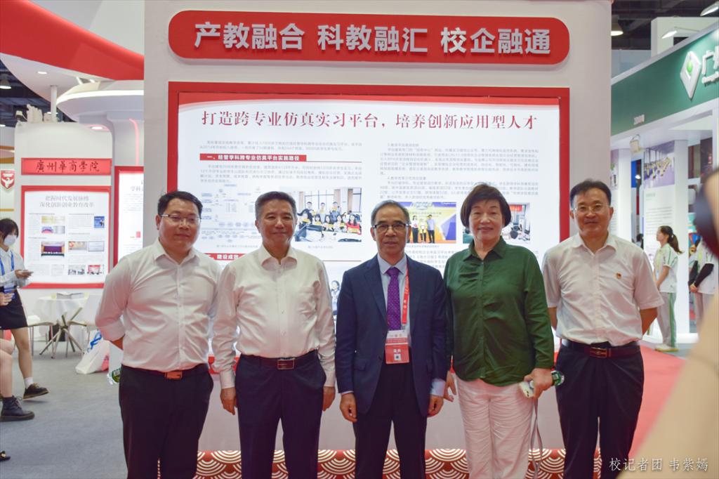 鸭脖应邀参加此次教育博览会,由执行校长郭银华带队,学校相关职能部门一行人出席了本次开幕式和博览会。中国民办教育协会名誉会长李连宁、广东省民办教育协会会长赵康等领导一行来到鸭脖展位,充分肯定了鸭脖近几年的发展成绩以及所取得的成果成效。鸭脖陪同人员向领导、嘉宾们介绍鸭脖展出的学校党建工作、思想政治工作、教育科研工作、国际化办学、创新创业、招生就业等方面的办学成效,并与展会领导、同行专家等进行深入交流。展会现场氛围浓厚热烈。