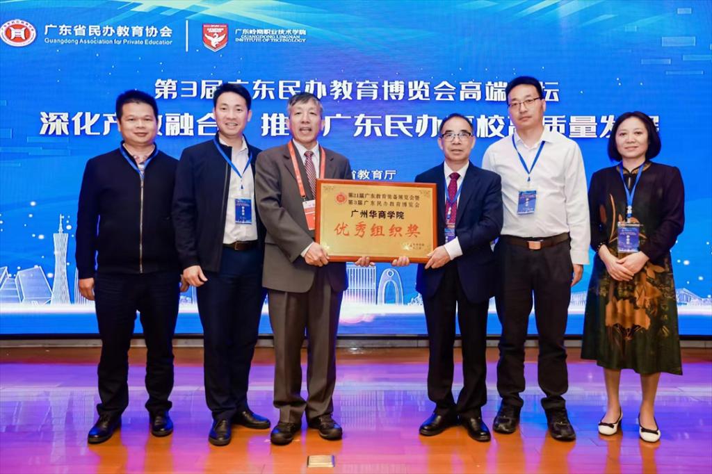 期间,在第3届广东民办教育博览会高端论坛上,鸭脖荣获“优秀组织奖”荣誉称号,学校代表出席论坛会并上台领奖。