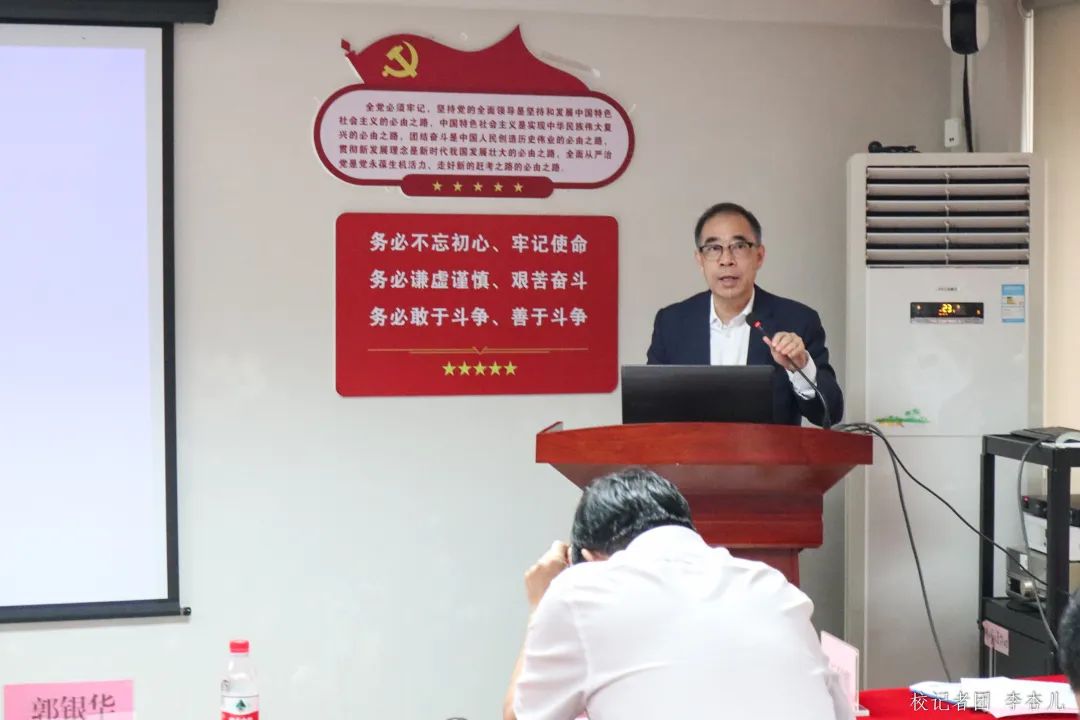 学校高级顾问胡军、执行校长郭银华、合格评估专家范忠宝、副校长支戈壁、王列耀、韩兆洲、陈美华、王力东、程辛荣出席了本次会议。参加本次会议的还有各职能部门负责人、国家级和省级一流本科专业所在学院院长及分管副院长、国家级和省级一流本科专业负责人、其他二级学院院长等。本次会议由教务处处长傅道忠主持。
