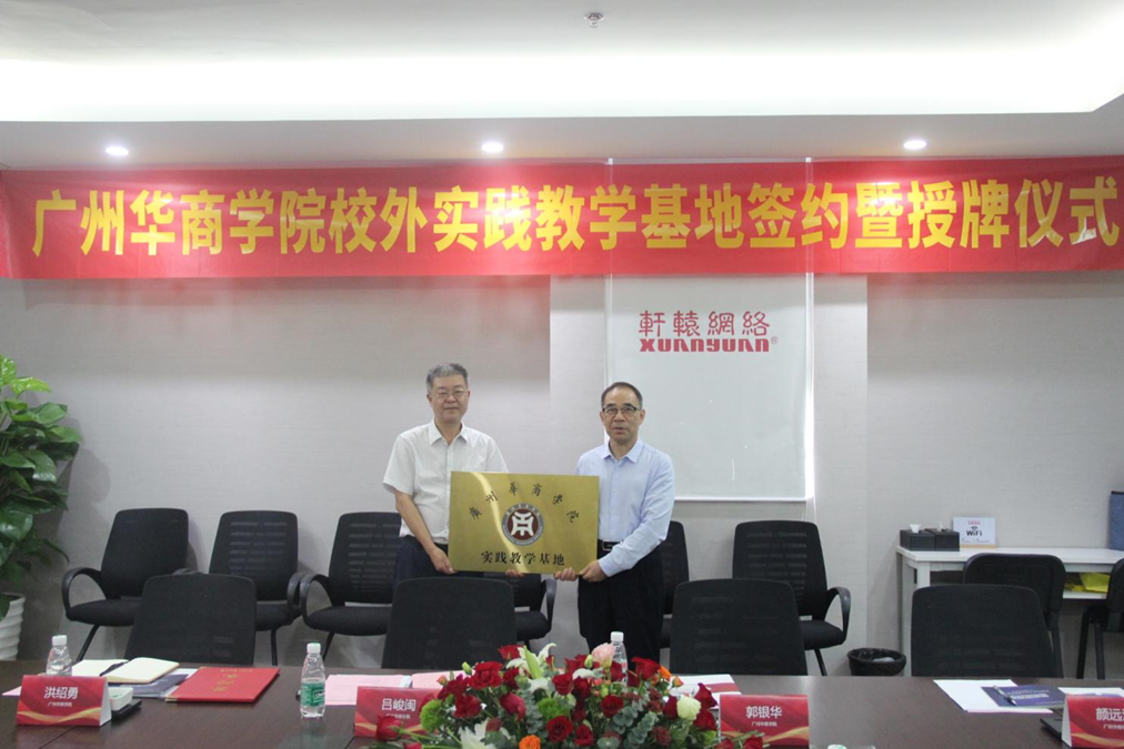 紧接着,吕副校长代表yabo鸭脖官网数据科学学院与轩辕网络签署校外实践教学基地合作协议书,郭校长代表学校为轩辕网络授牌“广州商学院实践教学基地”。