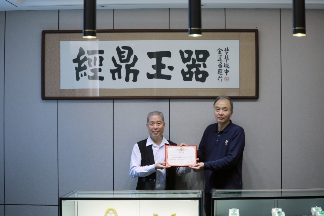 朱晓红院长为聚璟轩玉雕设计工作室颁发校外实践教学基地牌匾